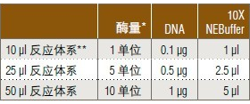 ? 建議在 50 μl 反應(yīng)體系中消化 1 μg 底物 DNA。
