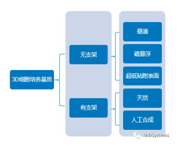 3D細(xì)胞培養(yǎng)基質(zhì),首先根據(jù)有沒有支架分成兩大類,每類又有細(xì)分的技術(shù)和來源特點(diǎn):