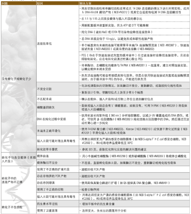 下面的指南可用于解決分子克隆實驗中所出現(xiàn)的問題。關(guān)于優(yōu)化轉(zhuǎn)化實驗的其它建議參閱 2013﹒2014 商品目錄 323 頁。