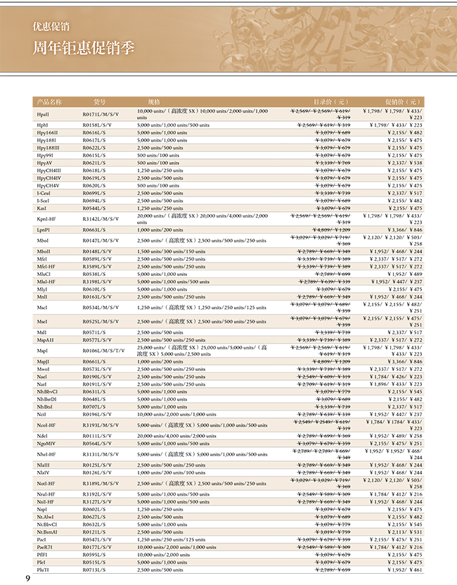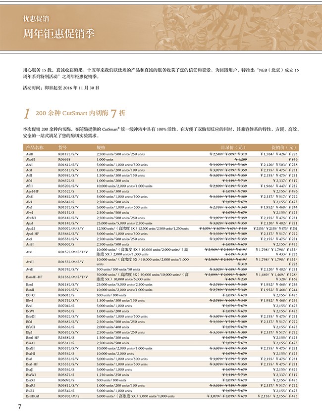 1. 200 余種 CutSmart 內(nèi)切酶 7 折