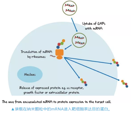 文章顯示,研發(fā)人員采用體外轉(zhuǎn)錄mRNA合成技術(shù),將表達(dá)病毒SARS-CoV-2蛋白N、M、E和S轉(zhuǎn)入細(xì)胞,進(jìn)行表達(dá)篩選,并通過(guò)蛋白自組裝,成功獲得了不含RNA內(nèi)核的病毒樣顆粒(virus like particle,VLP)。電鏡照片清楚地顯示了病毒外殼中由S蛋白構(gòu)成的“皇冠”,這也正是病毒進(jìn)行細(xì)胞侵襲的關(guān)鍵部分。將mRNA疫苗遞送到體內(nèi)后,表達(dá)的病毒樣顆??杉せ蠲庖呦到y(tǒng),產(chǎn)生有效結(jié)合病毒的中和抗體。